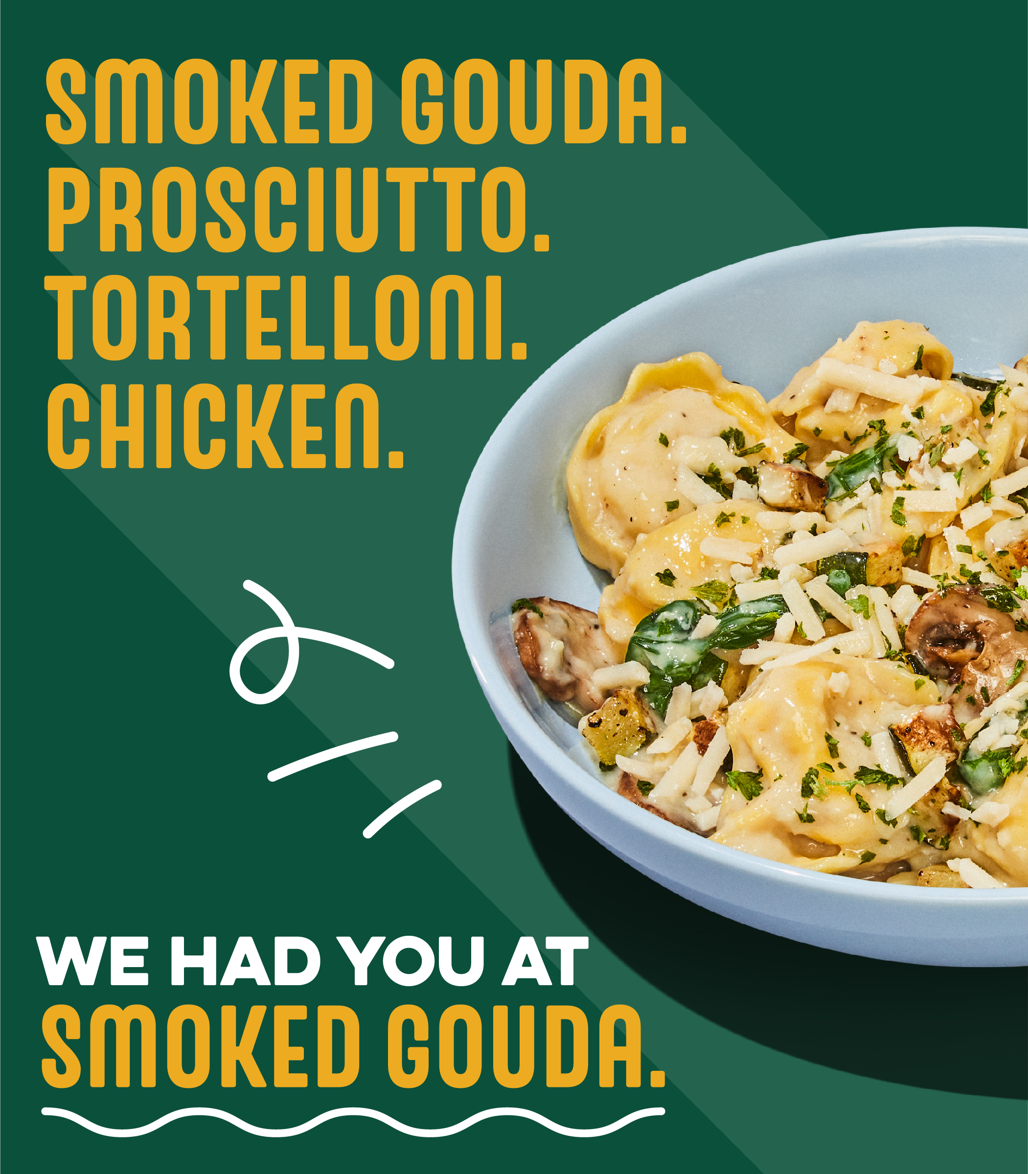 Chicken Prosciutto Tortelloni with Smoked Gouda